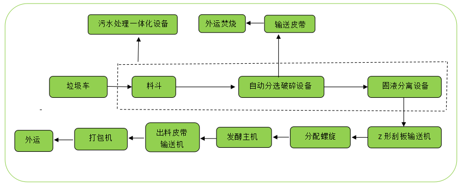 方案设计的工艺路线为:减量化、无害化、资源化处理工艺,处理设备的处理对象为有机垃圾;