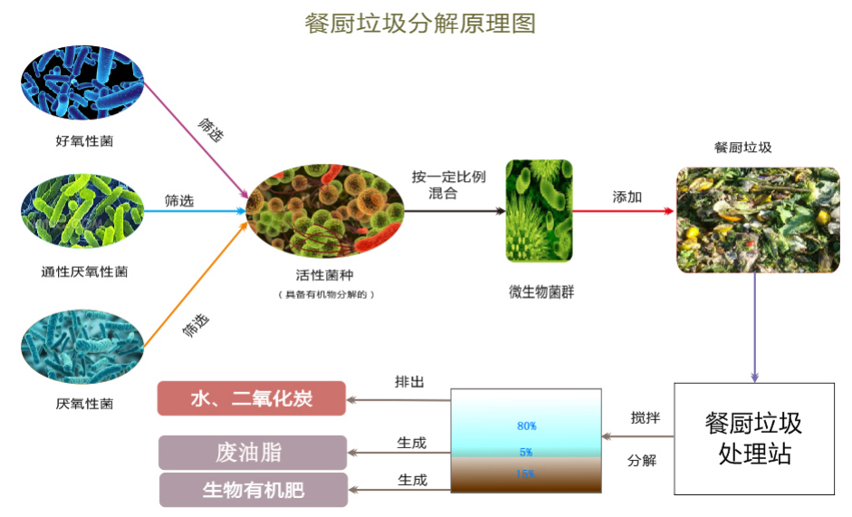 生物菌群是从多种好氧菌内提取,并根据各自特性,最大限度的分解有机垃圾,最终发酵出有机肥料。