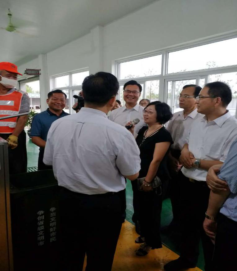 省建设厅项厅长、吴厅长、包主任、蒋处长、嘉兴市张市长、蔡秘书长、李书记、汪局长丶平湖市祁书记、戴市长,金主任、徐局长、新仓镇庄镇长、董镇长、环卫所倪所长等所有领导参观大树环保新仓镇垃圾处理中心点